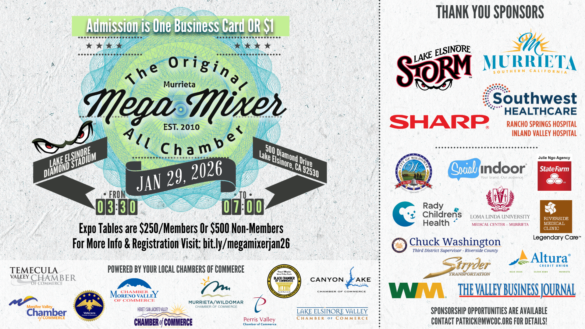 This regional networking event brings together businesses and professionals from across the area for an evening of connection, collaboration, and community engagement. This year’s mixer will be held at Lake Elsinore Diamond Stadium, offering a unique setting to meet fellow business owners and explore potential partnerships.
