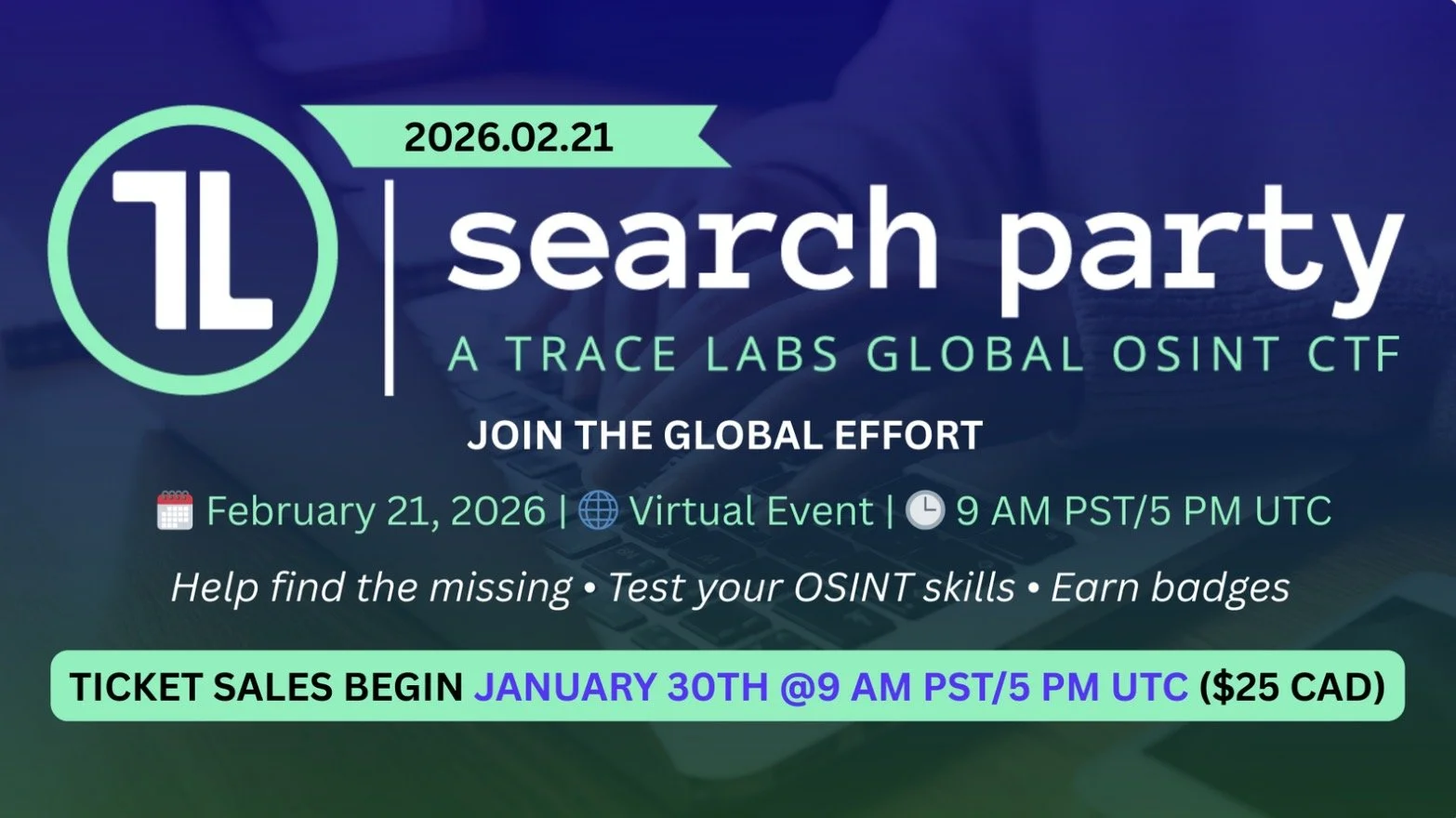The Search Party capture the flag (CTF) crowdsources open-source intelligence (OSINT) to generate new investigative leads that are reviewed and provided to law enforcement agencies working active missing persons cases. Participants work within defined ethical and legal boundaries, using publicly available information and submitting findings through Trace Labs’ purpose-built Search Party platform.