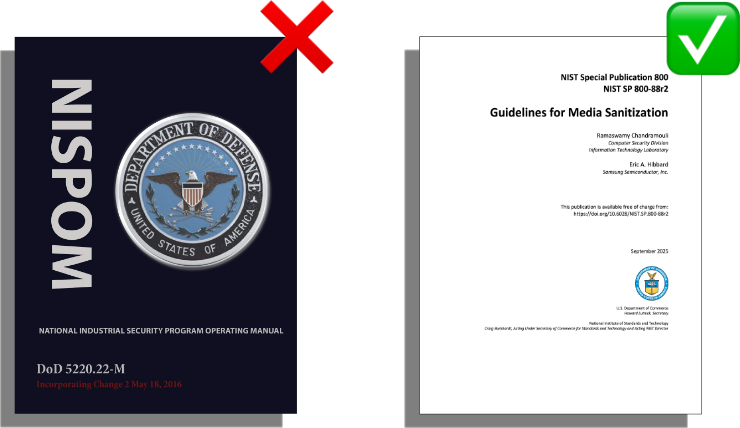 *DoD 5220.22-M, “National Industrial Security Program Operating Manual” (NISPOM); Erase-Check-Erase (ECE) method.